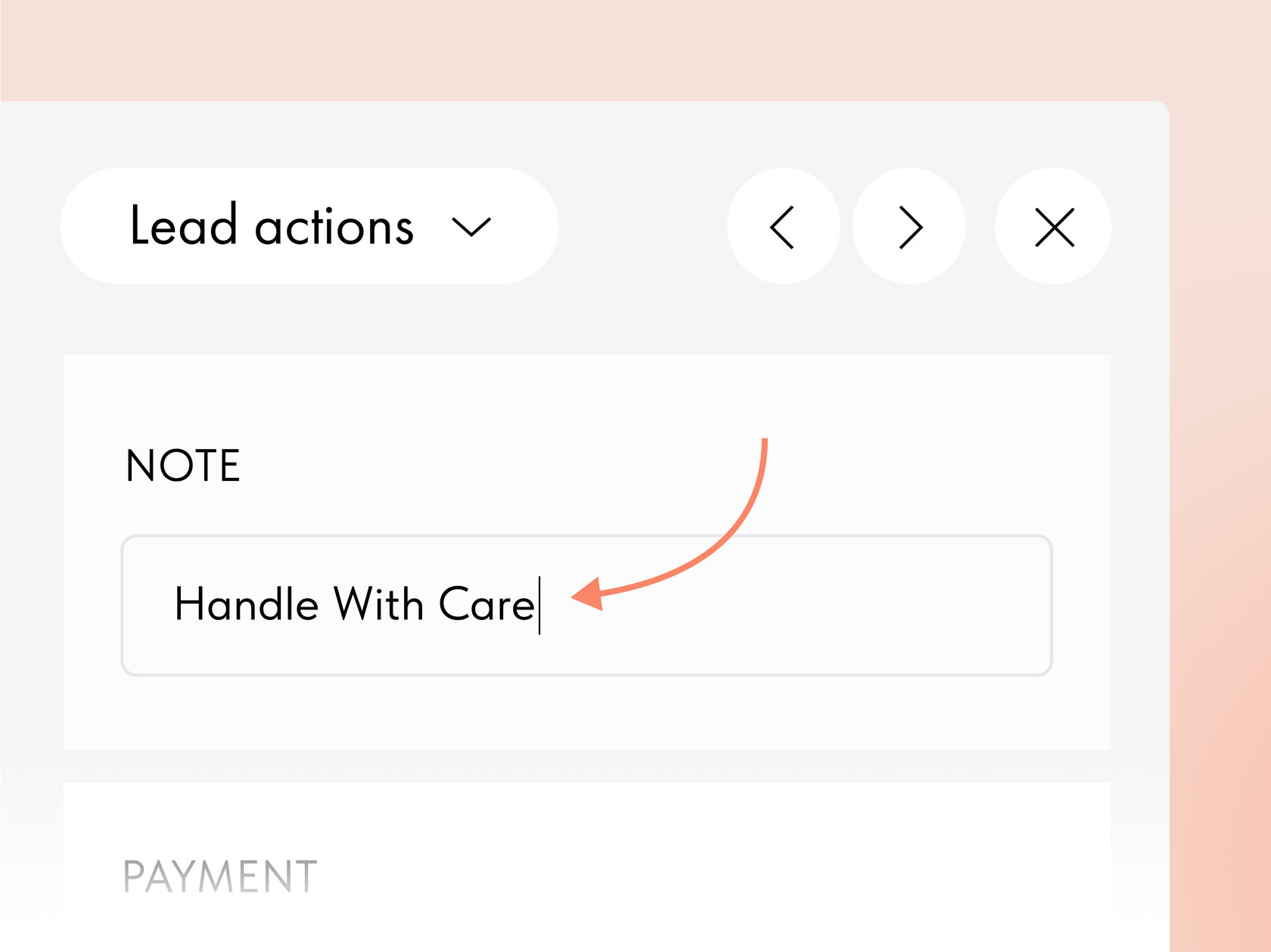 You can now leave internal comments in the lead card. For example, include a note about fragile goods for the fulfillment team.