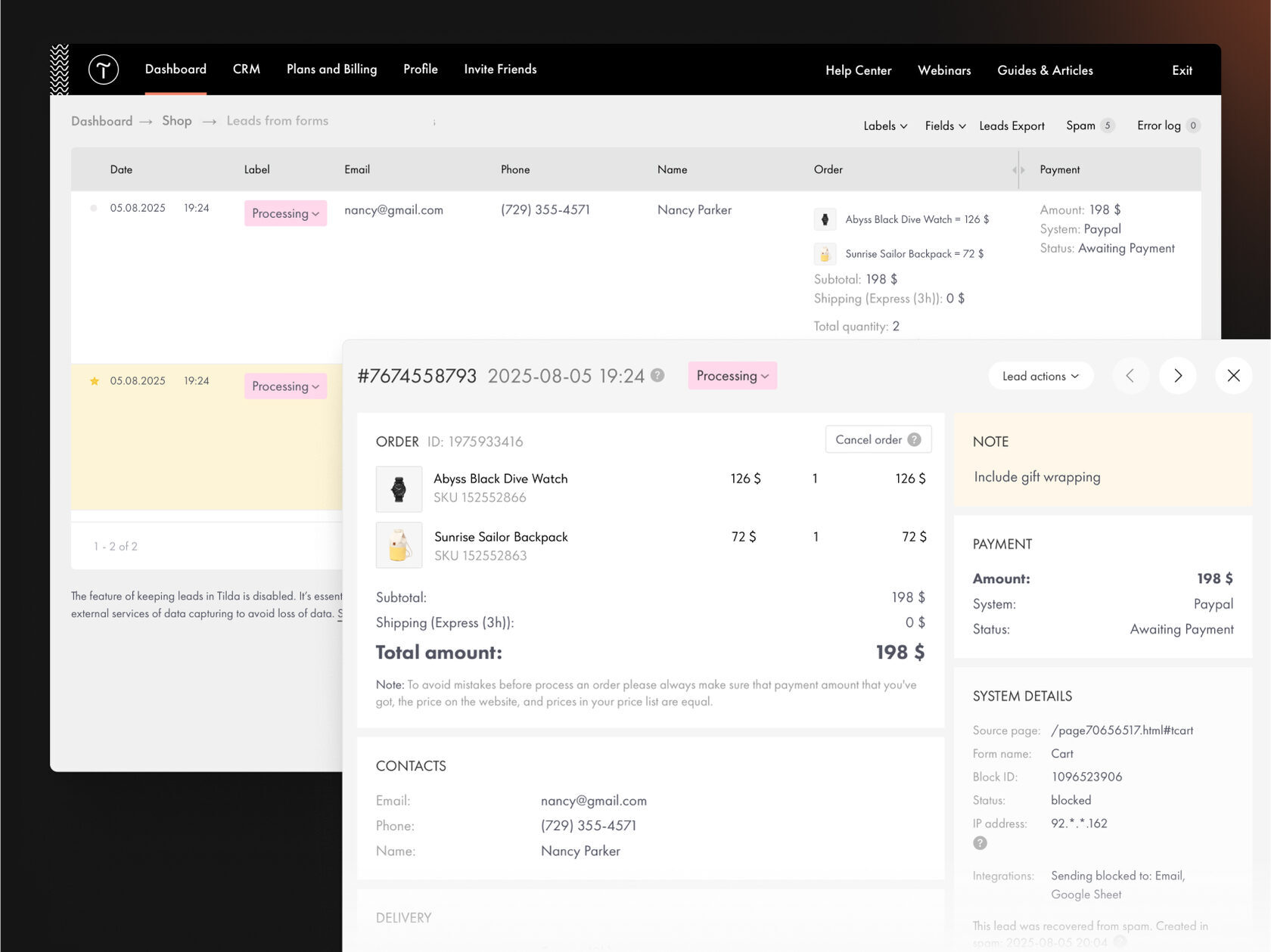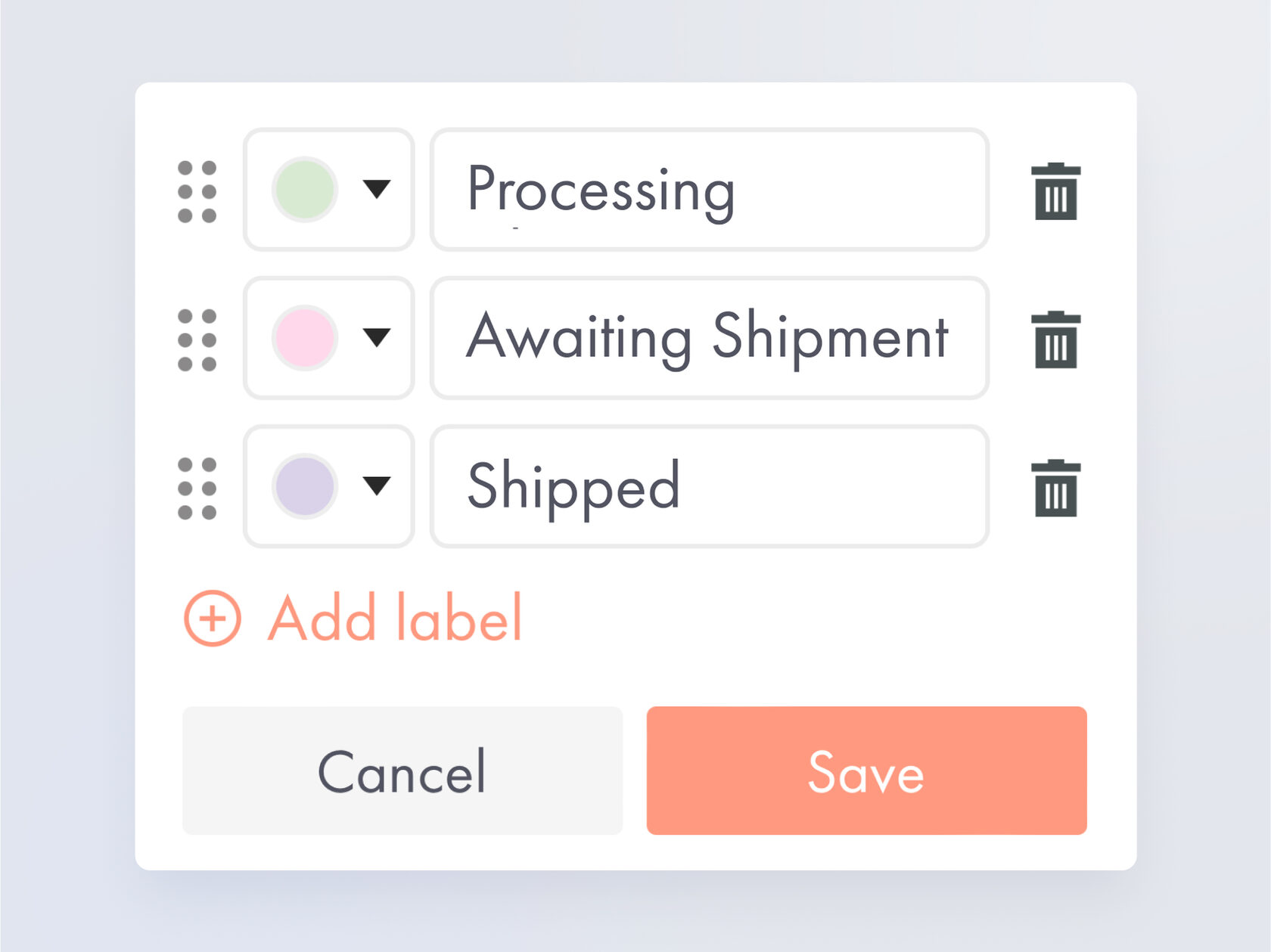 Organize leads by adding custom labels, such as "Processing" or "Shipped." You can define label names and colors, and filter leads by labels.
