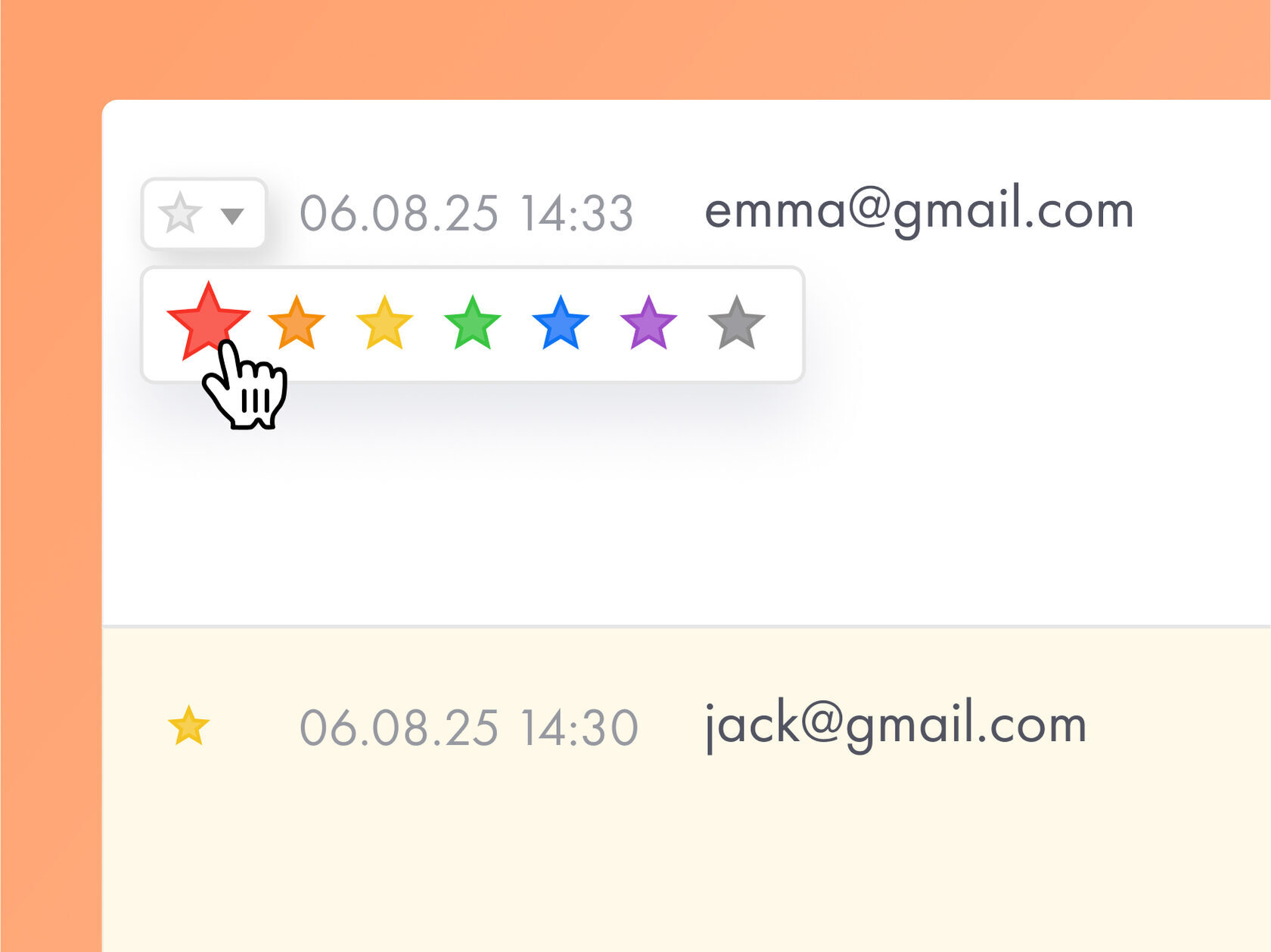 You can highlight a lead with a star and choose from seven colors. It will be marked as read, and the entire row will be color-coded.