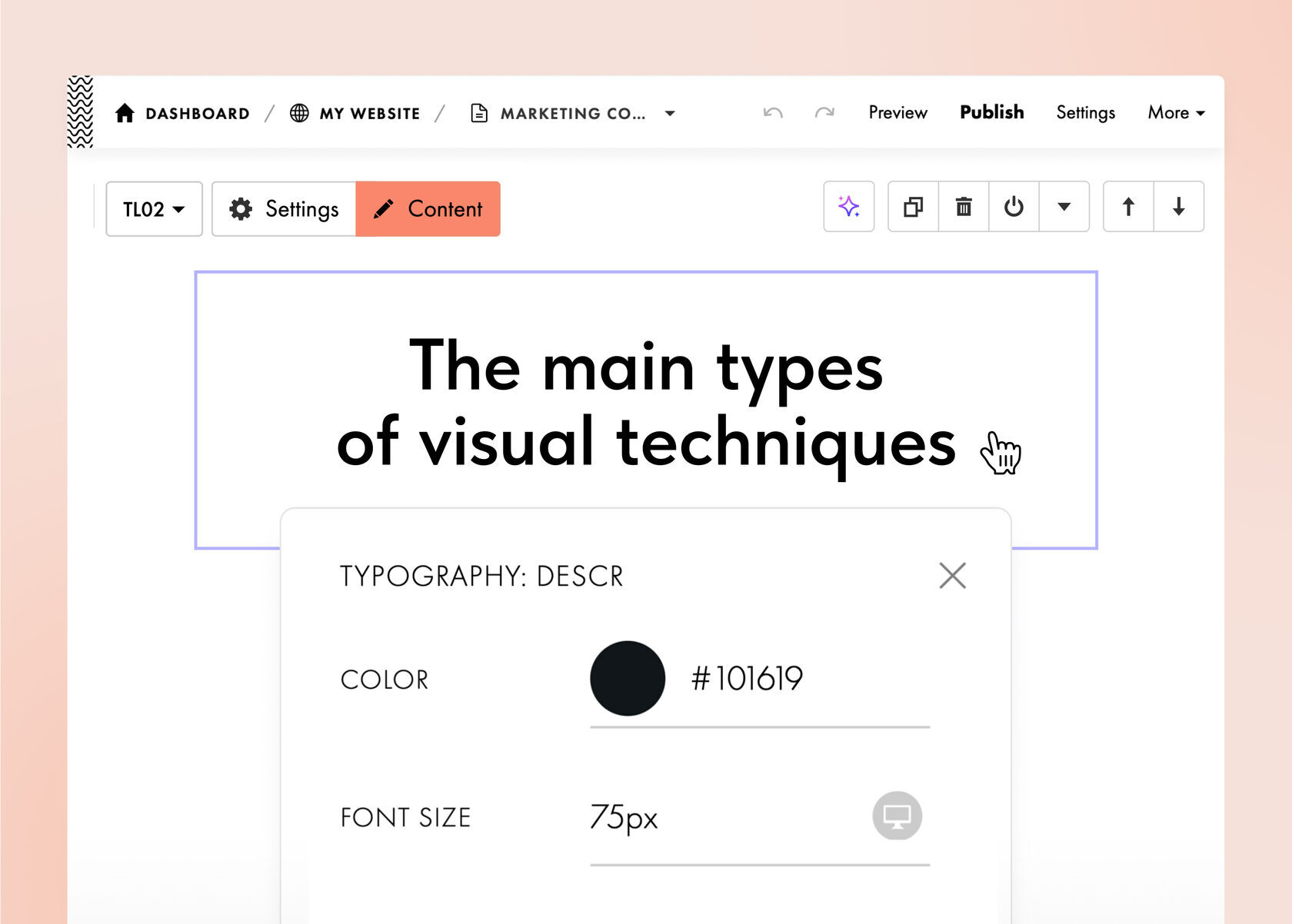 You can now modify typography directly on the page, without opening the block’s Settings tab. Simply Cmd/Ctrl + click on a text element, or right-click it and choose "Typography" from the context menu.