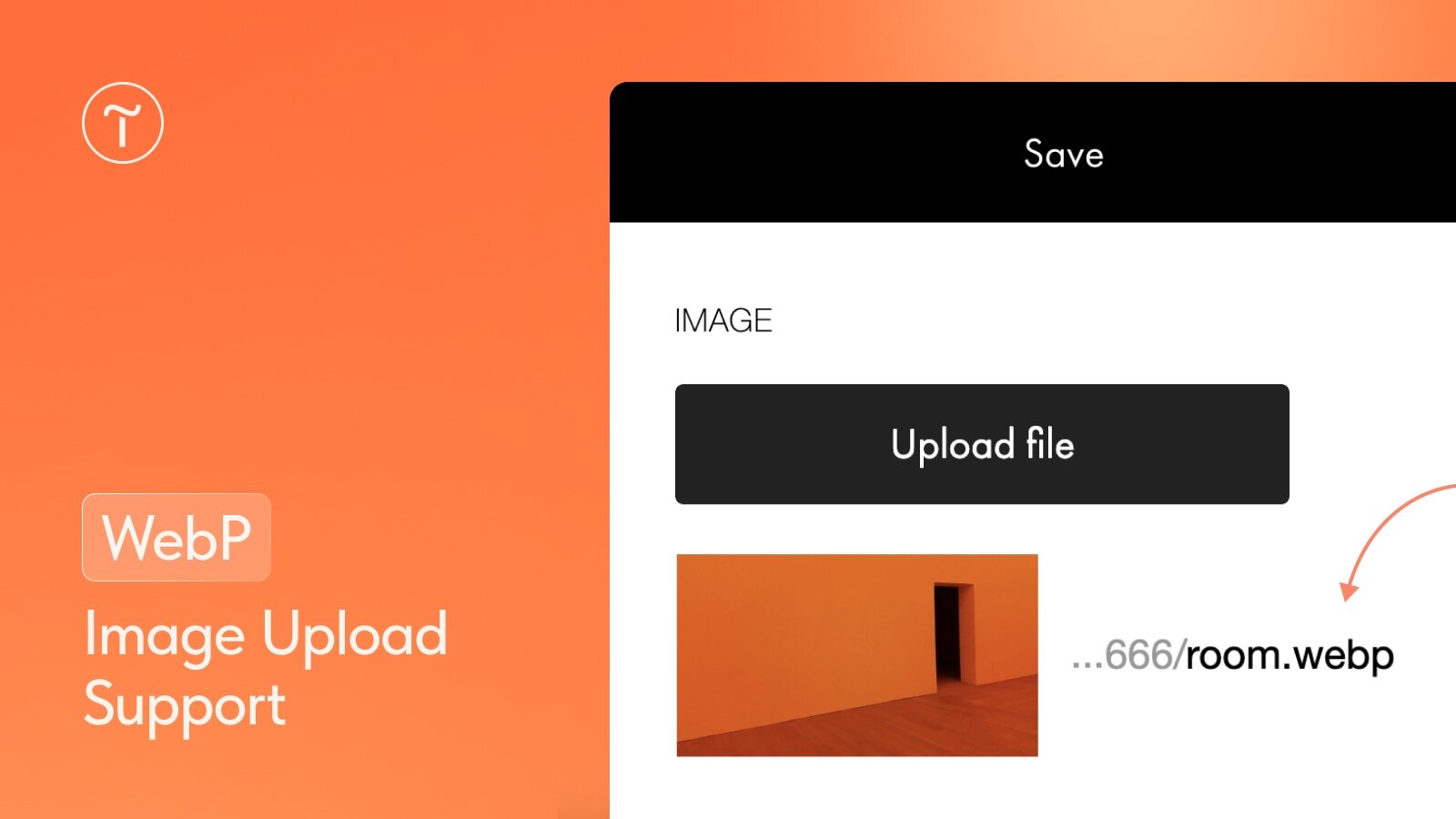 If you upload an image in a different format (like JPEG), it will be automatically converted to WebP using adaptive image loading.