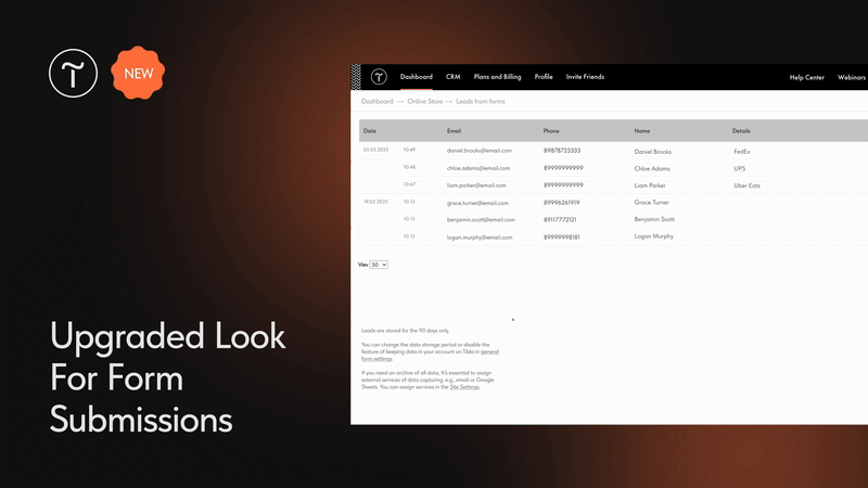 The table that displays form submissions has been redesigned to be more compact and easier to read. You can resize columns as needed, and if the submission includes product details like an image, payment info, or delivery details, those will now be shown in the table as well.